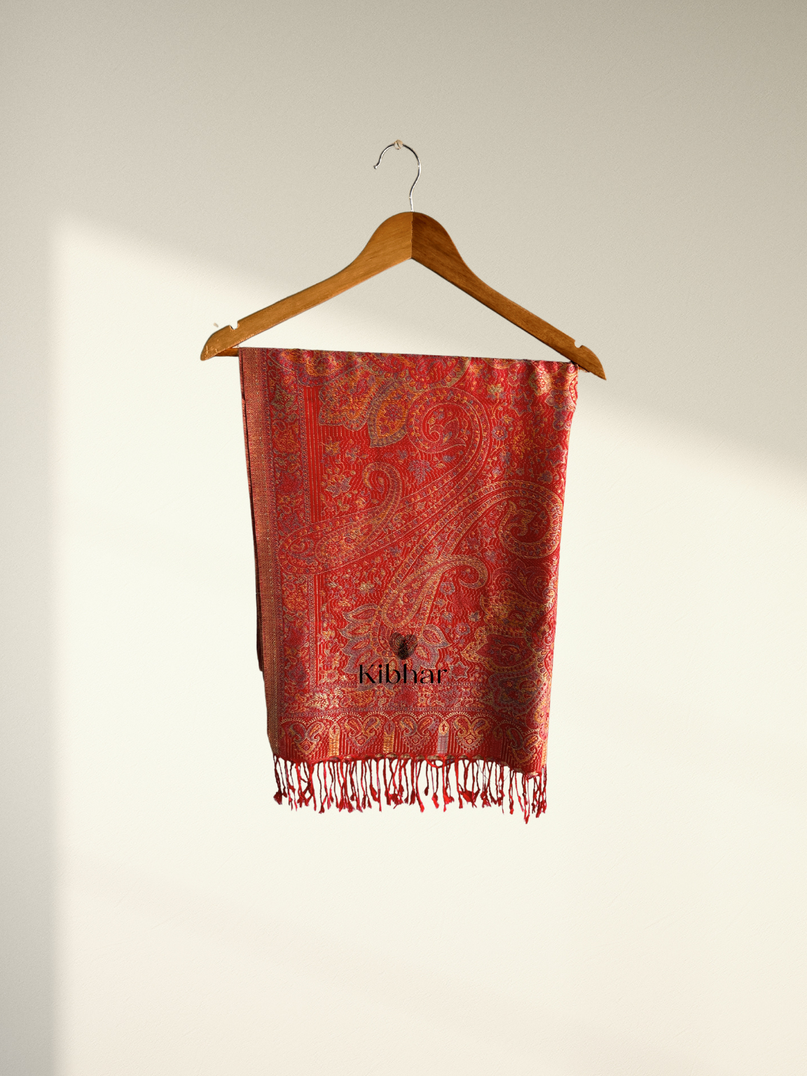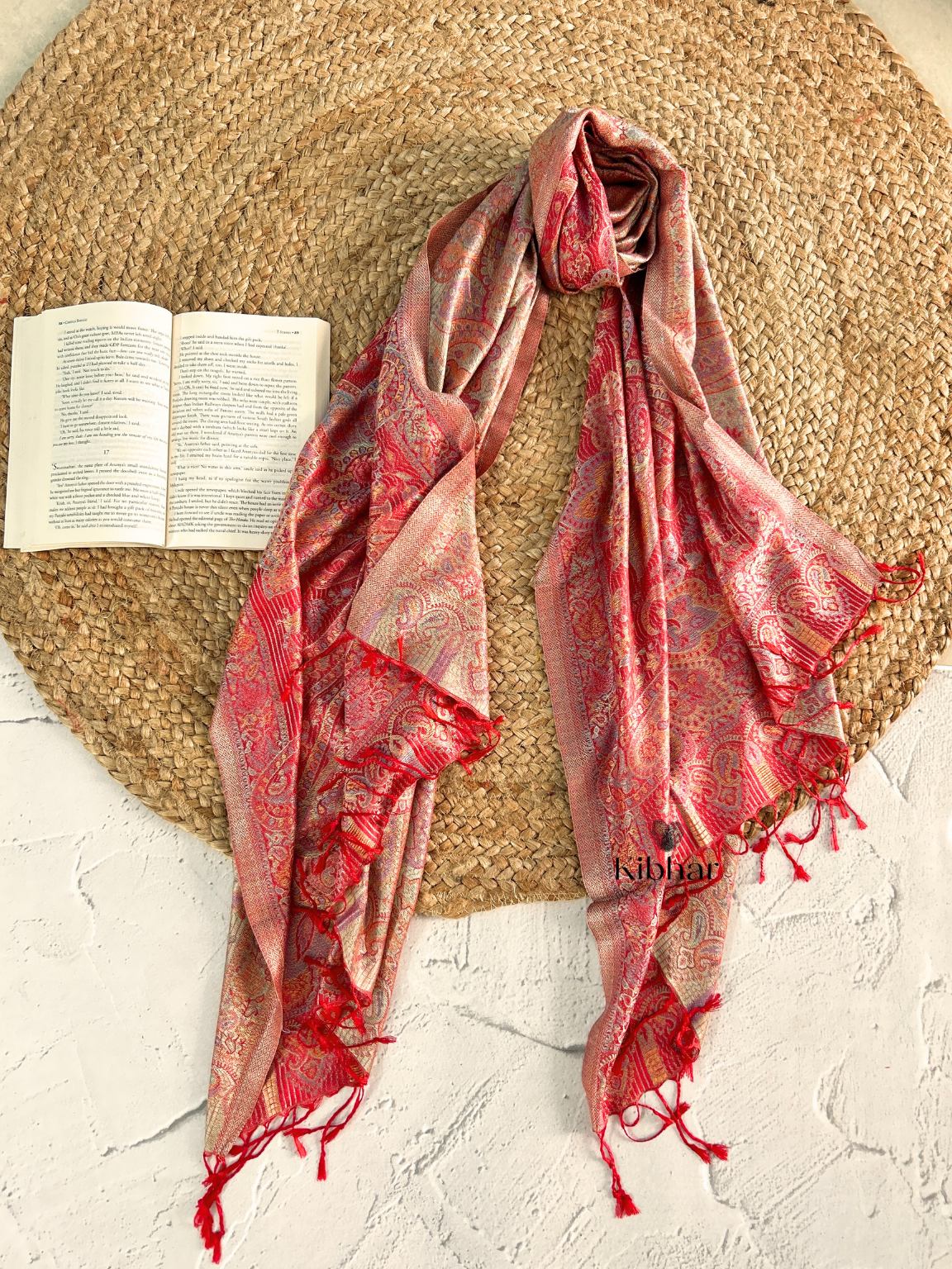 Jamavar Modal Kani Stole A luxurious accessory that effortlessly combines the softness of Jamavar Modal with a stunning Kani. Crafted with precision and care, this stole is a celebration of elegance and warmth.