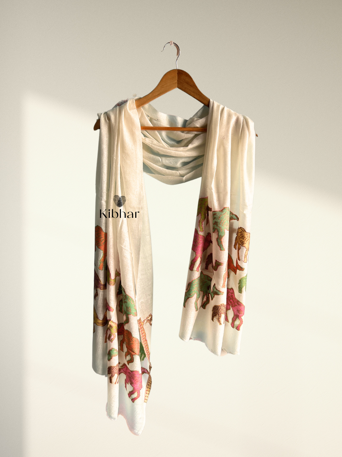 A luxurious accessory that effortlessly combines the softness of pure fine wool with a stunning cream color wool with camel weaves. Crafted with precision and care, this stole is a celebration of elegance and warmth.