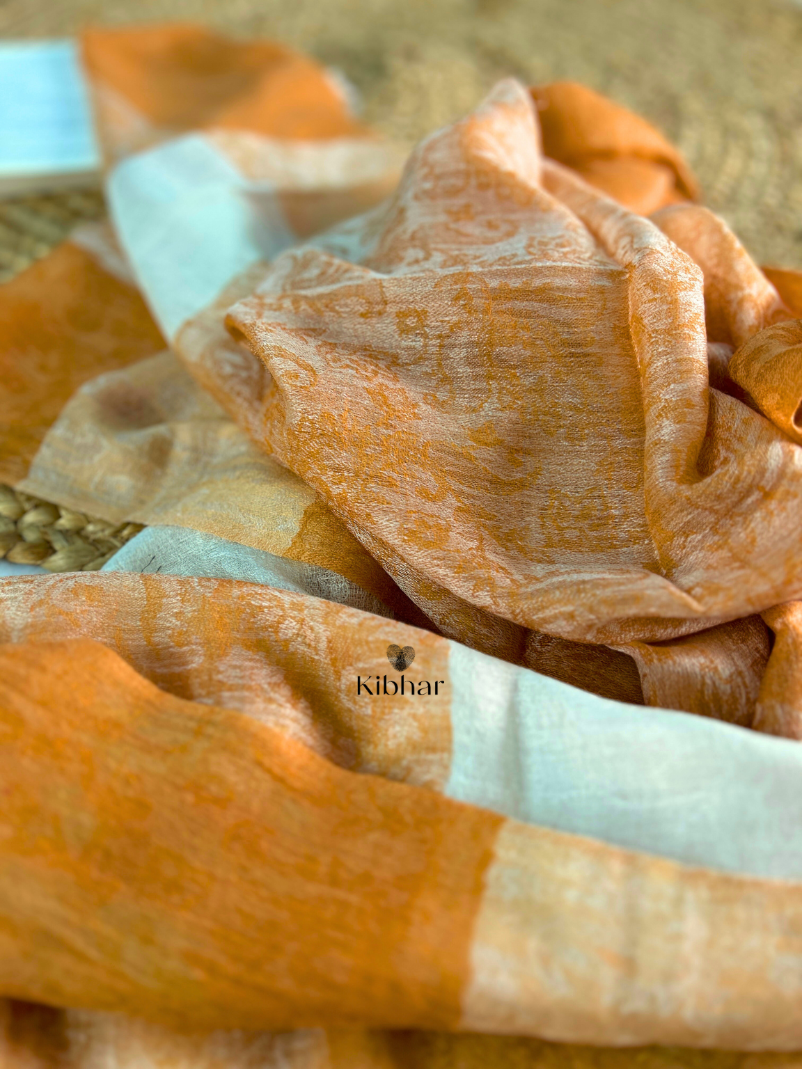 • Indulge in the luxurious warmth of our exquisite orange and cream fine wool shawl, adorned with intricate self-design work. Crafted with precision, its ultra-soft texture promises unparalleled comfort, making it the perfect accessory for both style and coziness.