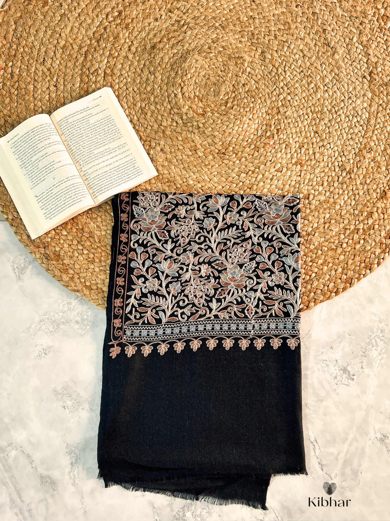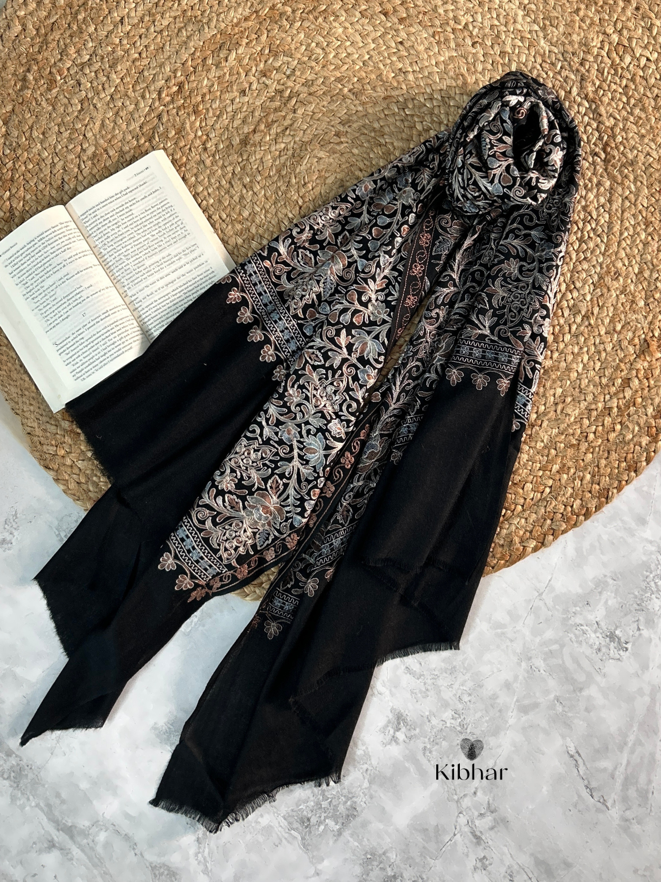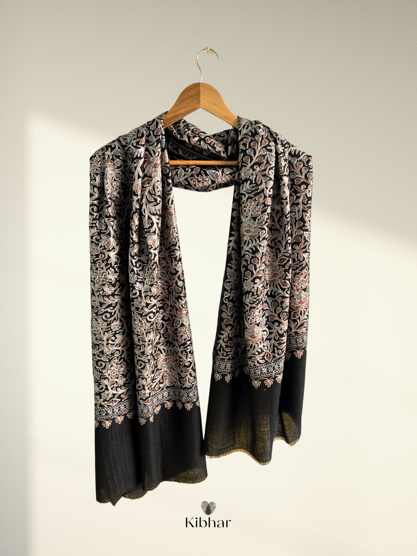 fine wool Jaal Thread Work Shawl A magnificent blend of traditional craftsmanship and contemporary elegance. This exquisite shawl is a testament to the timeless artistry of fine wool, showcasing intricate Jaal (net) patterns delicately embellished with meticulous thread work.