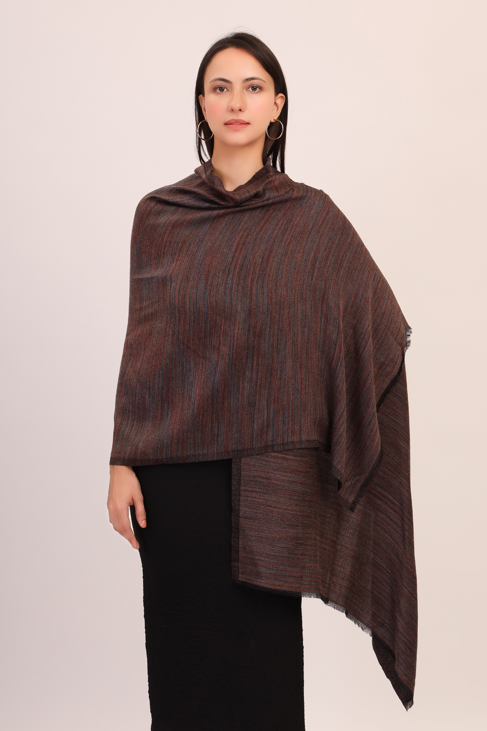 Embrace understated elegance with our dark brown Self-Texture Pashmina Wool Stole. The subtle texture adds depth and sophistication to the rich dark brown hue, making it a timeless accessory. Crafted from the finest pashmina wool, this stole is luxuriously soft and warm, perfect for adding a touch of refined style to any outfit.