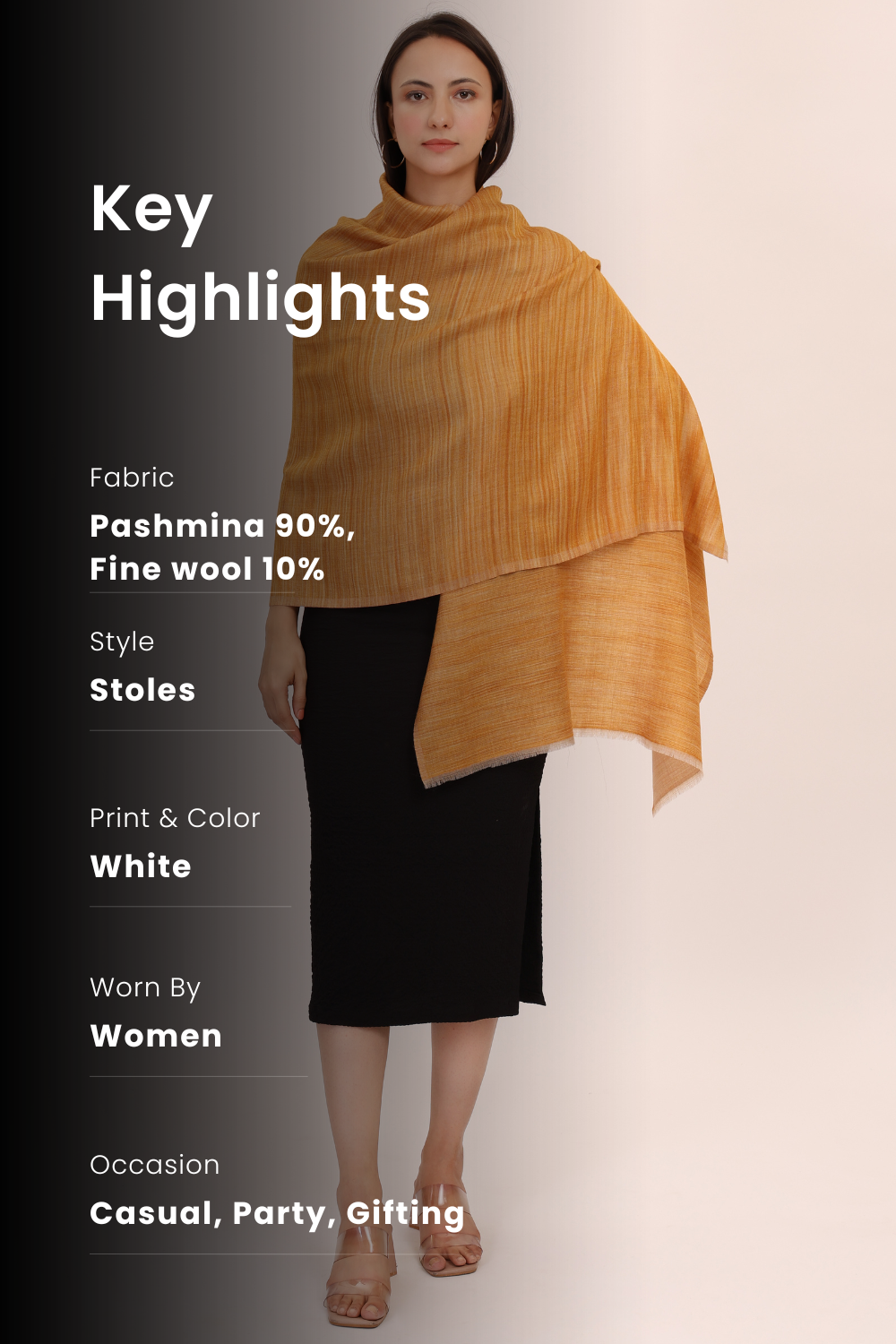 Embrace understated elegance with our mustardSelf-Texture Pashmina Wool Stole. The subtle texture adds depth and sophistication to the rich mustard hue, making it a timeless accessory. Crafted from the finest pashmina wool, this stole is luxuriously soft and warm, perfect for adding a touch of refined style to any outfit.